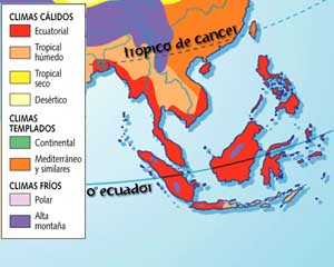 La temperatura. Las variaciones de temperatura no son especialmente reseñables ya que no acusan cambios extremos entre estaciones a nivel de mar. En general, las temperaturas descienden alrededor de 1 ° por 90 metros de incremento en la elevación del nivel del mar, con algunas regiones montañosas de gran altura interior que experimentan heladas nocturnas. Las cordilleras más altas de Papúa están permanentemente cubiertos de nieve.