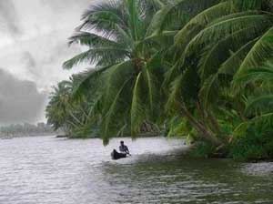 Los vientos y lluvia. Los patrones de viento predominante interactuar con las condiciones topográficas, para producir variaciones significativas en las precipitaciones en todo el archipiélago. En general, las partes oeste y el norte de Indonesia, experimenta la mayoría de las precipitaciones, ya que las nubes del monzón del norte que van hacia el oeste en movimiento están cargadas de humedad en el momento en que lleguan a las regiones más distantes. Oeste de Sumatra, Java, Bali, el interior de Kalimantan, Sulawesi y Papua son las regiones más húmedas de Indonesia, con una precipitación de más de 2.000 milímetros (78,7 pulgadas) por año. En parte, esta humedad se origina en los picos de alta montaña que atrapan el aire húmedo. La ciudad de Bogor , cerca de Yakarta, reclama tener el mayor número de tormentas de lluvia al año 322. Por otro lado, las islas más cercanas a Australia, incluyendo Nusa Tenggara y el extremo oriental de Java, tienden a ser secas, con algunas zonas con menos de 1.000 milímetros (39,4 pulgadas) por año. Para complicar la situación, algunas de las islas de las Molucas del sur sufren unos patrones de lluvia muy impredecibles, dependiendo de las corrientes de aire local.